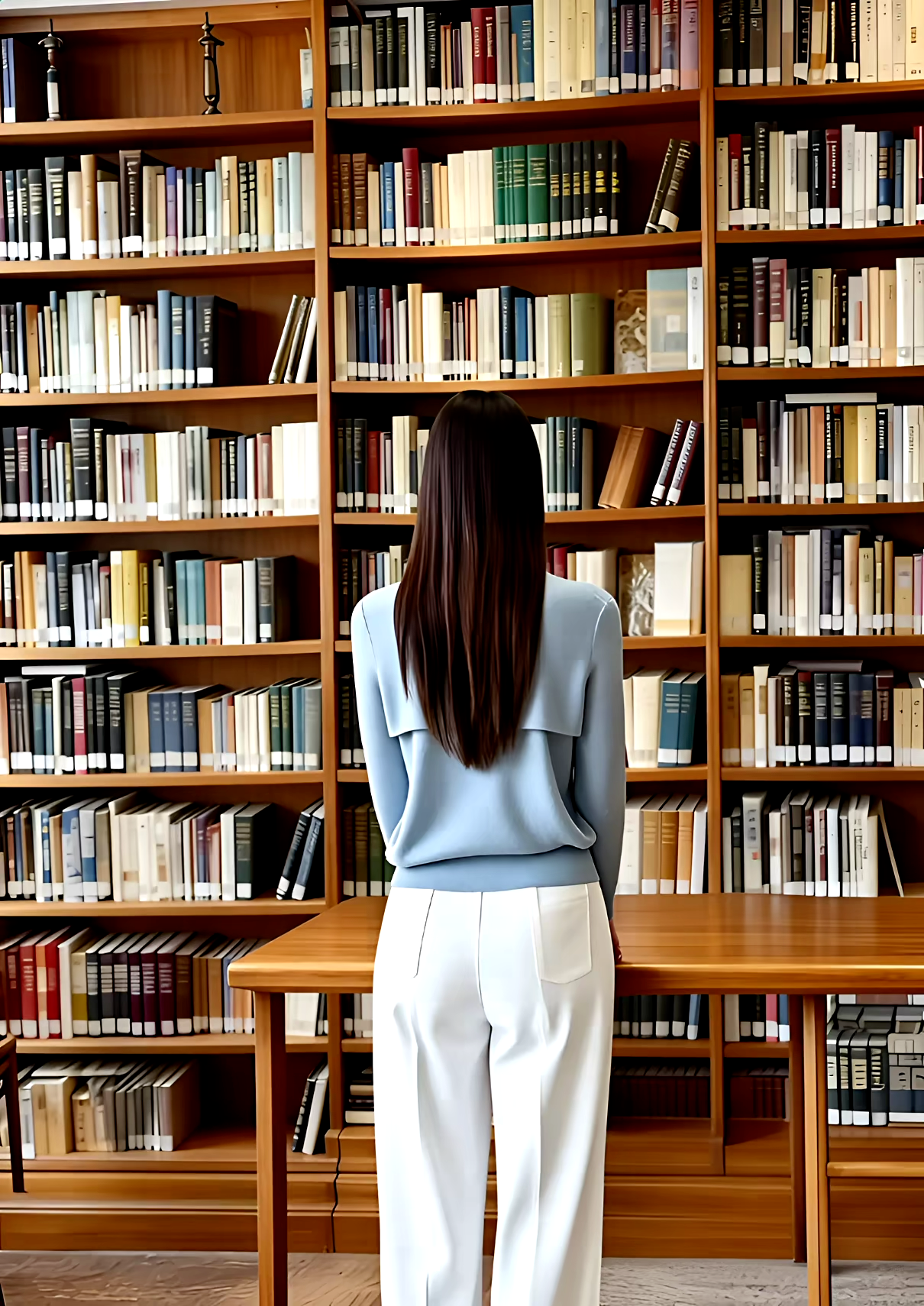 Color. Soft blue knit + white pants. A clean, calm classic.